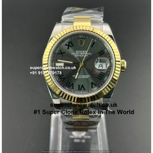 Elevate your wristwear with the ultimate symbol of British luxury: the Rolex Datejust 41 Wimbledon Dial Yellow Gold Two-Tone 1:1 Super Clone Watch. Exclusively manufactured by the world-renowned VS Factory (VSF), this masterpiece bridges the gap between classic elegance and sporting history. The legendary slate grey dial, complete with forest green Roman numerals, is perfectly complemented by the brilliant 18ct yellow gold-plated fluted bezel and Jubilee center links. Forged from genuine 904L Oystersteel, it is the premier choice for commanding the boardroom in the City of London or making an impression in Manchester. We are dedicated to providing the most elite rolex super clone UK inventory, ensuring our clients receive true 1:1 quality without the boutique waitlists.