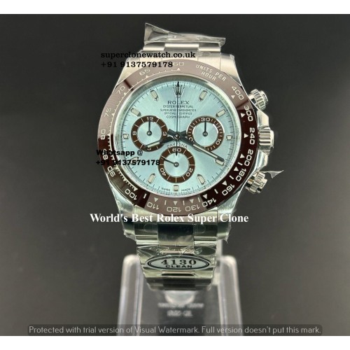 Command absolute prestige with the undisputed holy grail of modern sports chronographs: the classic Rolex Daytona Cosmograph 116506 Ice Blue 1:1 Super Clone Watch. Historically reserved for models forged from solid 950 platinum, the breathtaking glacial Ice Blue dial is instantly recognizable to any true horological connoisseur. Perfectly framed by the iconic chestnut brown Cerachrom ceramic bezel and featuring classic luminous baton hour markers, this piece defines stealth wealth. Our master factory has meticulously recreated this aesthetic using solid 904L Oystersteel, highly polished to mimic the brilliant, icy white luster of authentic platinum. Whether you are navigating the elite business sectors of London or attending a high-stakes event, this timepiece delivers an unforgettable impact. We are proud to source the most technically advanced rolex super clone UK inventory, ensuring you experience genuine 1:1 perfection without the impossible boutique waiting lists.