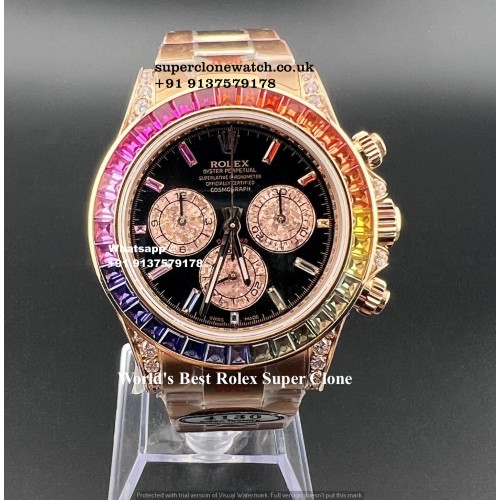 Rolex Daytona Rainbow Real Moissanite Diamonds Super Clone | Swiss 4130 Caliber Same Like Genuine |Ref.116595